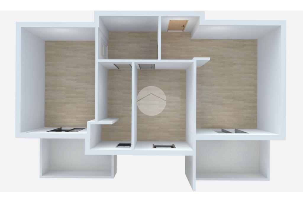 Al momento, quindi, il portone d'ingresso apre su un luminoso open space con una porta finestra che esce sul primo terrazzo, disimpegno camera matrimoniale con secondo balcone e bagno finestrato con box doccia.