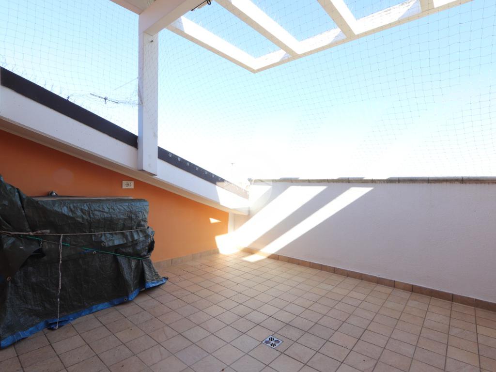 La casa si compone di un open space con angolo cottura, terrazzo abitabile coperto esposto a est, secondo balconcino nel soggiorno, camera matrimoniale molto spaziosa con locale ripostiglio annesso, cameretta singola e bagno con doccia senza finestra.