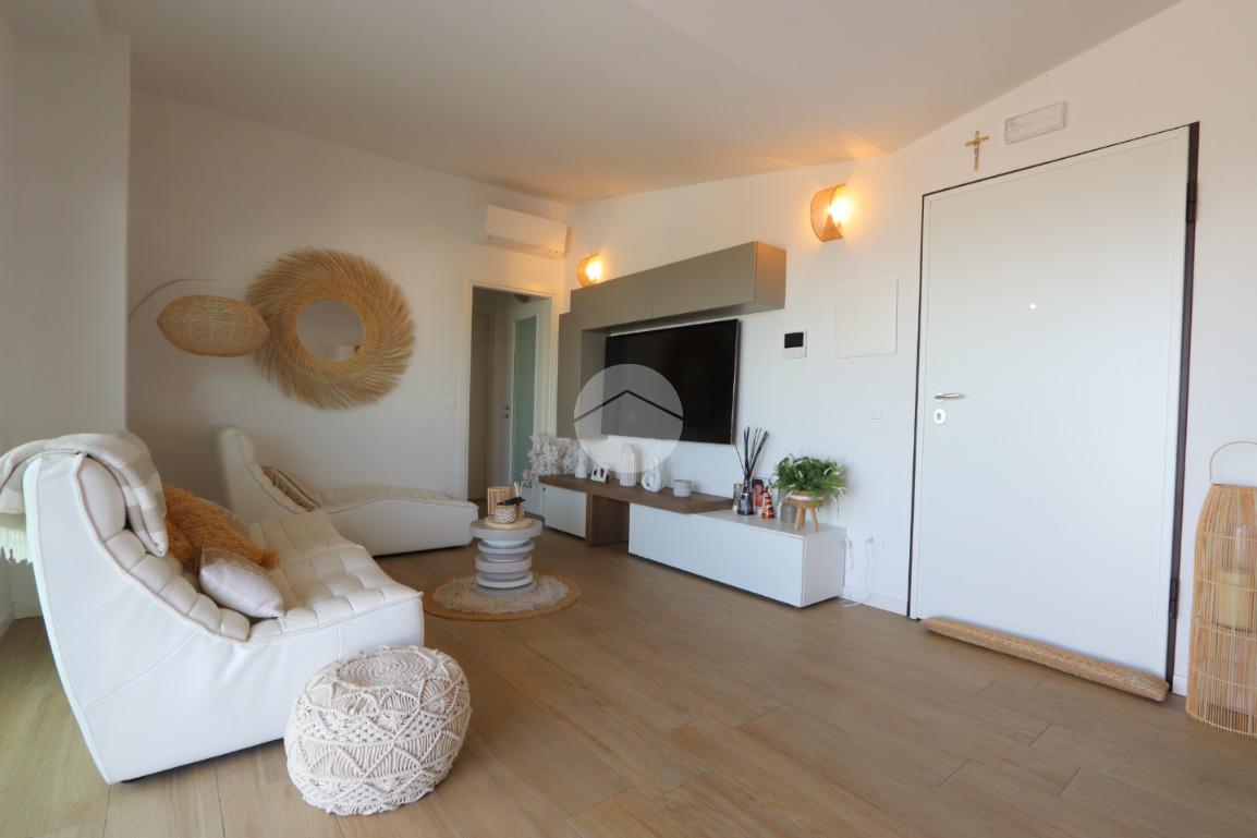 La proprietà occupa la metà dell'intero piano con un terrazzo di circa 100 mq completamente esposto ad est con un bellissimo affaccio aperto e panoramico sull'intero litorale.