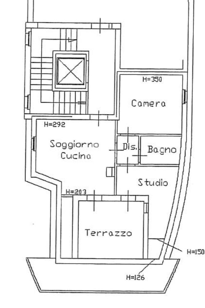 La casa è cosi composta: soggiorno con piccolo angolo cottura con uscita sul terrazzo dove oltre allo spazio per un tavolo con le sedie troviamo anche una piccola zona lavanderia.