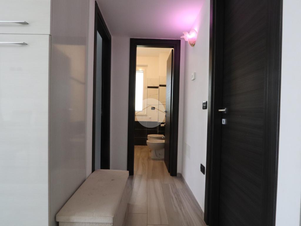 La casa è cosi composta: ingresso sul soggiorno con cucina componibile, disimpegno, due camere doppie di cui una con bagno ensuite e balconcino e un secondo bagno con doccia e finestra.