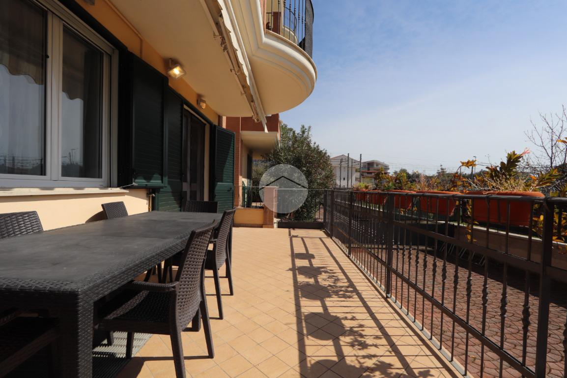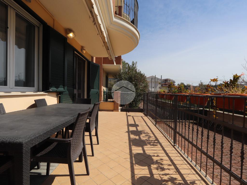 Lo spazio esterno è rappresentato da un bel terrazzo di circa 25 mq interamente coperto e attrezzato con tende da sole, comodissimo da ultilizzare durante la stagione estiva. Antistante all'ingresso della casa trovano spazio due posti auto scoperti, ma recintati.
