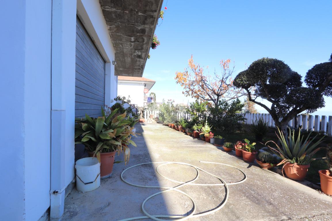 Una scalinata esterna conduce al primo piano dove c'è l'appartamento cosi composto: ingresso con salone con balcone di 20 mq VISTA MARE, cucina abitabile con camino e terrazzo esposto a ovest di circa 80 mq
